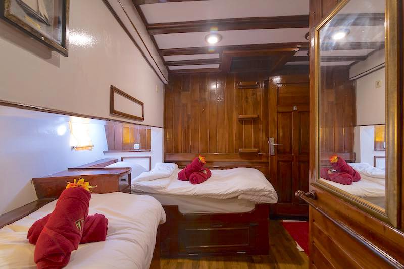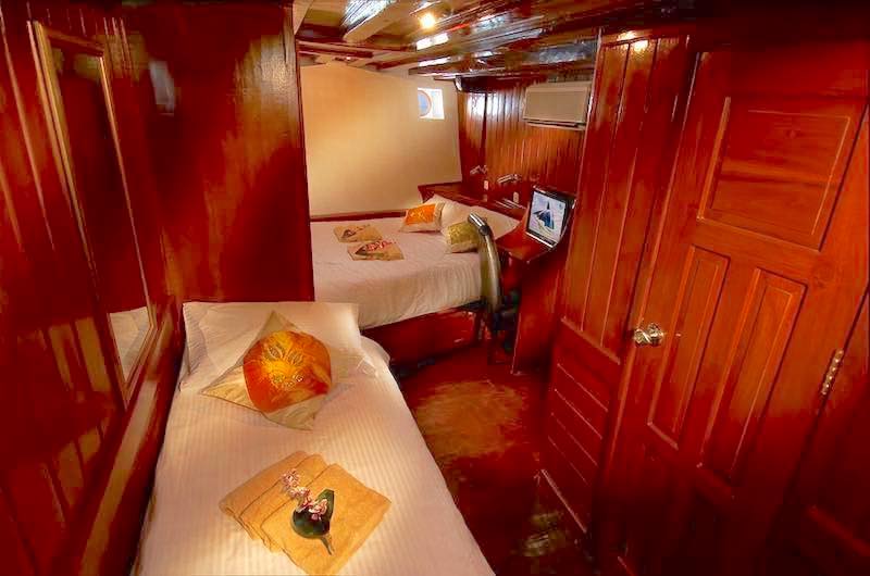 The lower deck twin cabin has 2 single beds for 2 single divers.